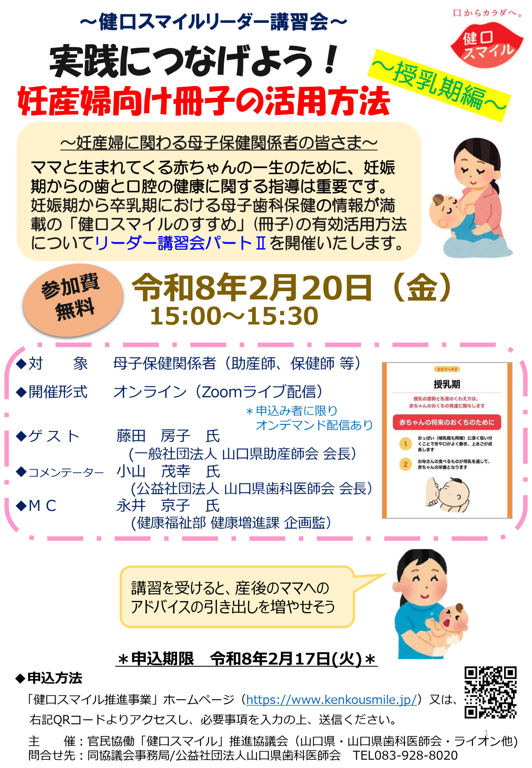健口スマイルリーダー講習会(母子保健関係者向け)「授乳期編」を開催します!